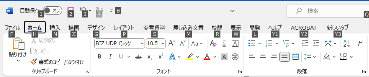 キーボードショートカットでリボンのタブを切り替えて、機能を呼び出す方法です。